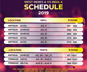 ST. JOHN’S, Antigua – A crucial first stage of post World Cup 2019 building ahead of the inaugural 2020 ICC One-day international league and 2023 World Cup commences tomorrow, when West Indies A and India A face off in the first of five 50 over matches that will be live streamed on www.Windiescricket.com and Sony LIV India, at the Coolidge Cricket Ground, Antigua.