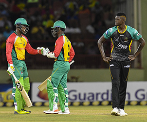 But with the required rate now below a run a ball thanks to the earlier fireworks, time was on the Amazon Warriors’ side. Hetmeyer found a willing ally in Australian all-rounder Chris Green (25* off 23) as Guyana romped home with 21 balls to spare.