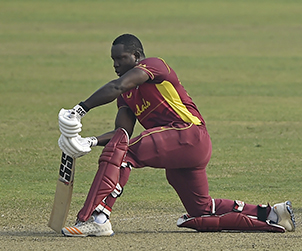 Powell topscored with a fluent 47 off 49 balls as he played some attractive strokes. He hit two fours and two sixes. Nkrumah Bonner made 31 and Raymon Reifer also scored 27 as West Indies were bowled out for 177 off 44.2 overs in reply to 297-6 off their 50 overs.