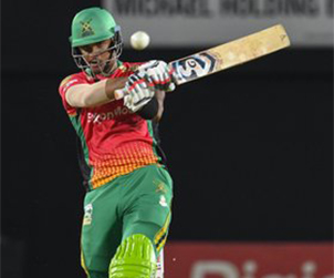Having been 9 not out from 15 balls at one stage, King raced to his half-century in just 18 further deliveries. Zahir Khan and Dwayne Smith were both struck for back-to-back Hero Maximums, with King hitting four fours and six sixes in all before holing out to long-on in Lewis’ first over for 59.