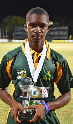 Athanaze, just last Saturday (February 24), played a steady and calm inning to help his team, the Windward Island Volcanoes towards a three-wicket win over defending champions, Barbados Pride in the Super50 Cup FINAL. With 28 still required from 33 deliveries, the 19-year-old Athanaze put on a mature performance to play a major role in a 31-run eighth-wicket stand with Captain Shane Shillingford, to steer the Volcanoes towards the Super50 Cup title final, taking home the Clive Lloyd trophy. Athanaze has a little ritual before he goes out to bat; “I put on all my left gear first and on approaching the rope, I say a little prayer.” In another three to five years, Athanaze thinks he will be an established franchise team player heading to the senior WINDIES team. His favorite food/meal is chicken burger with fries. And he enjoys dancehall music in his spare time.